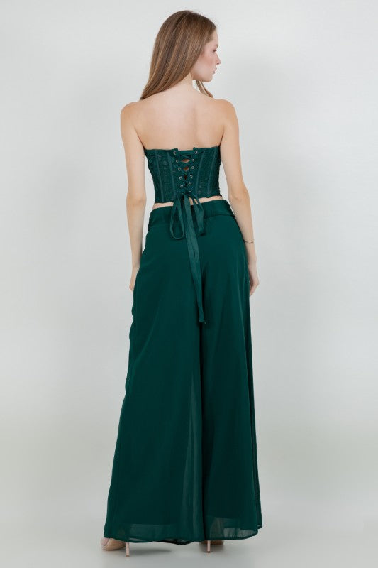 CROCHET CROP TOP WITH CHIFFON WIDE LEG PANTS SET