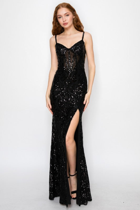 SEQUIN CORSET MERMAID MAXI COCKTAIL DRESS